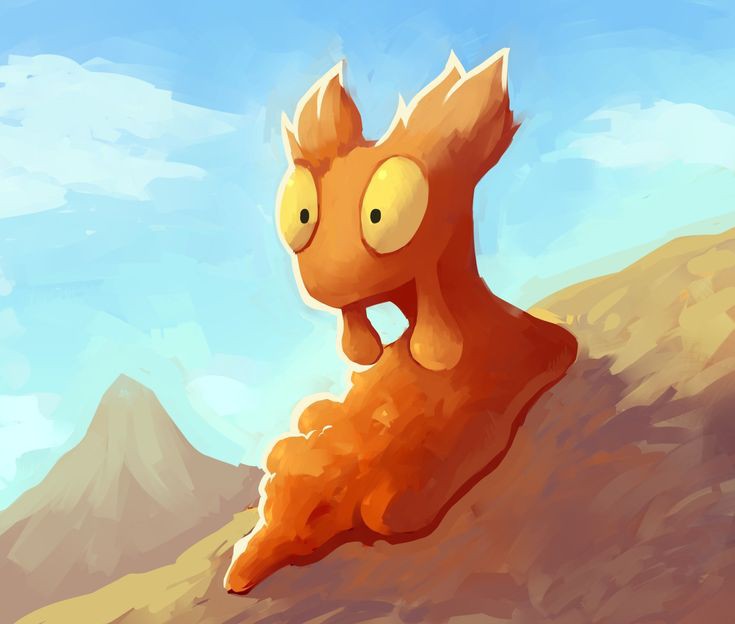 *_Descrição_:Slugma é um Pokémon de tipo Fogo da segunda geração, conhecido por sua aparência de lava derretida. Ele tem o corpo completamente formado por magma e parece uma espécie de massa de lava com olhos e uma expressão simplista. Sua principal característica é o fato de que ele está constantemente em estado de fusão, o que faz com que seja muito quente ao toque*